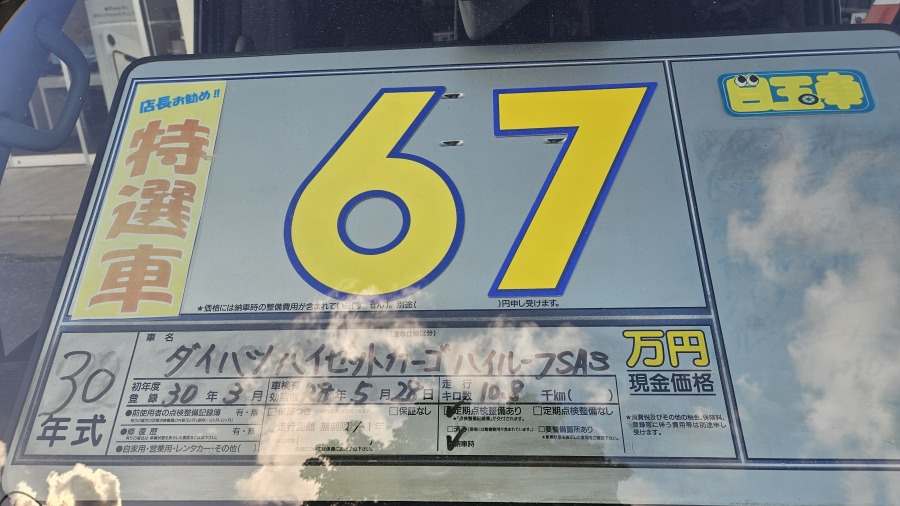 コミコミ総額:67万円 メーカー:ダイハツ 車種:ハイゼットカーゴ ハイルーフSAⅢ 色:白